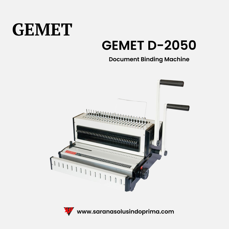 Gemet D-2050 berguna untuk proses jilid dengan bahan jilid kawat & plastik (dual fungsi) dan ukuran kertas hingga F4. Mesin ini dapat digunakan untuk memakai bahan-bahan jilid kawat & plastik yang umum dan banyak dijual di pasaran. Dengan mesin ini Anda dapat melakukan pemilihan lubang kertas (pisau dapat diatur). Dengan standard kualitas internasional, kami memberikan jaminan mutu terbaik dengan harga yang terbaik untuk Anda.Garansi produk 1 tahun termasuk servis dan parts.